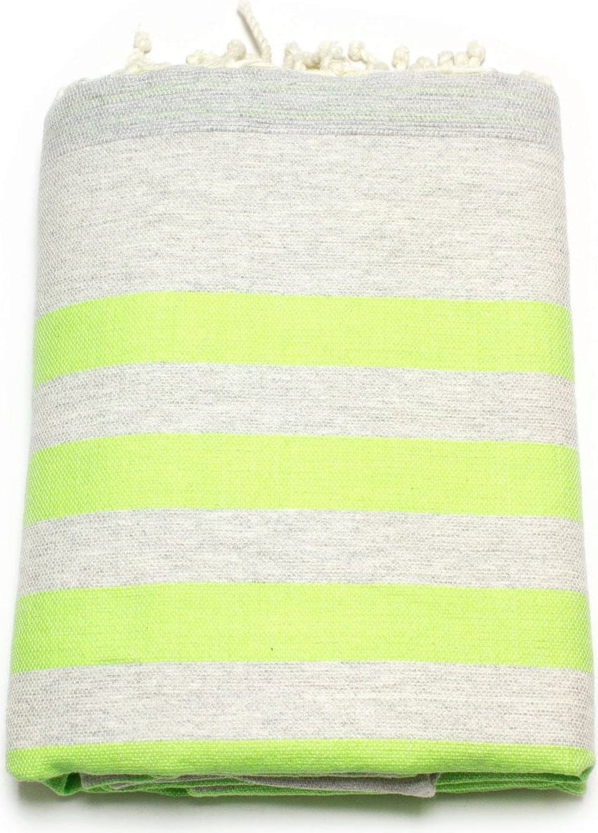 ANNA ANIQ Striped Terry Cloth Hammam Towel, Neon Green Fish