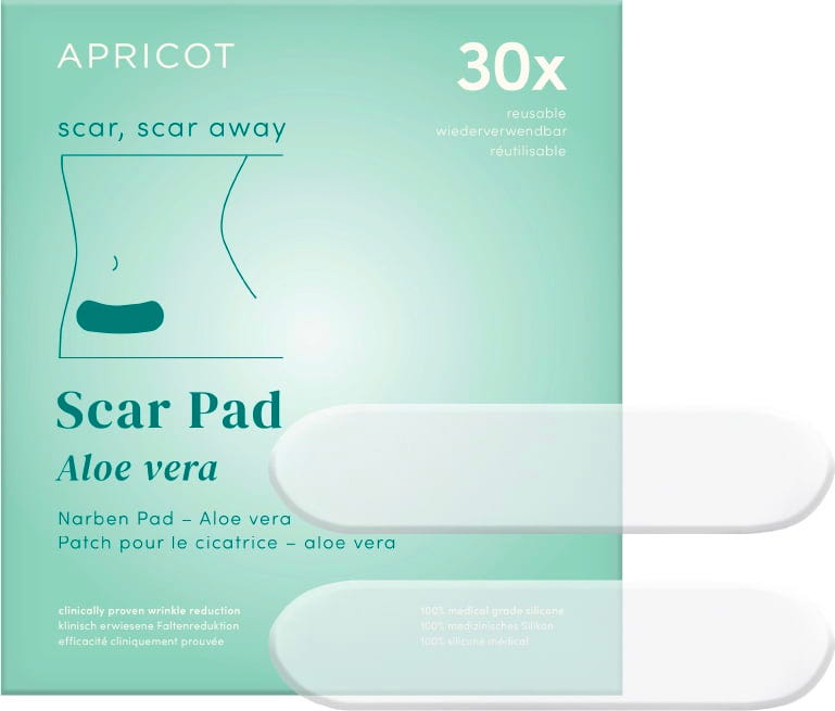 The Aloe Vera Scar Pads by APRICOT are suitable for use on old and new scars. Thanks to aloe vera, the scar is intensively nourished. The pads are made of medical-grade silicone and can be reused up to 30 times. They can also be used on sensitive skin or as after-sun care.