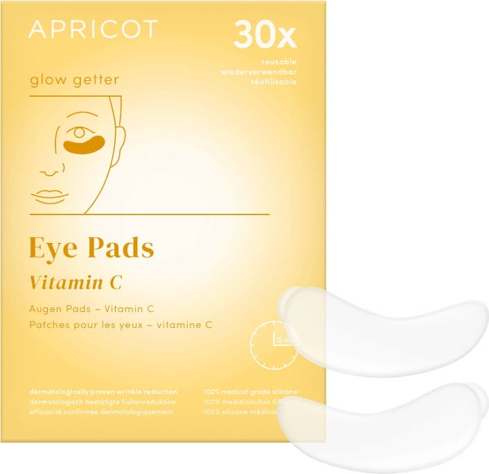 These anti-ageing Vitamin C Eye Pads by APRICOT are made of medical-grade silicone and can be reused up to 30 times. Antioxidant vitamin C intensively nourishes the skin under the eyes and helps smooth fine lines. Your eyes will glow beautifully in no time.