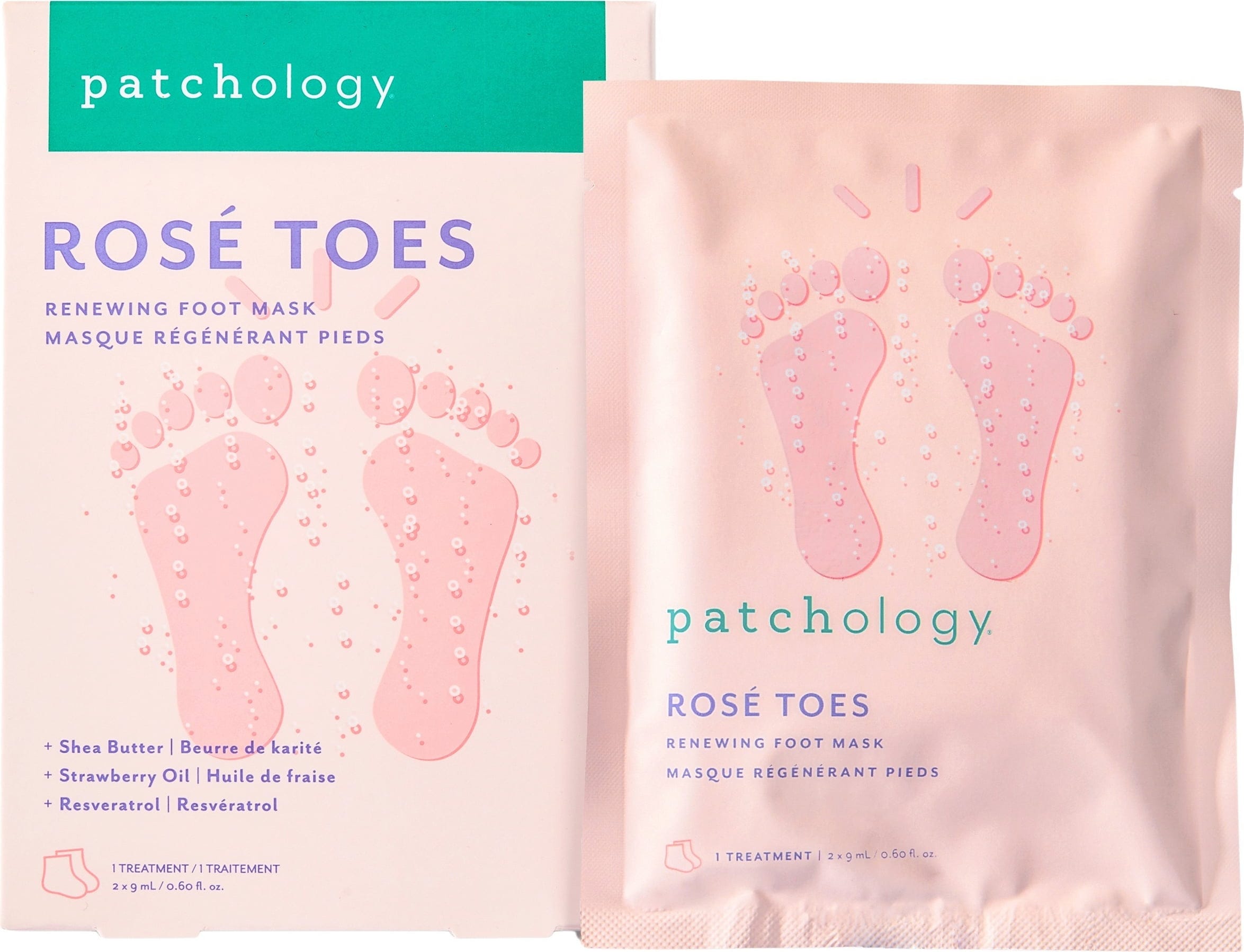 Patchology Rosé Toes Renewing Foot Mask, 1 Pair
