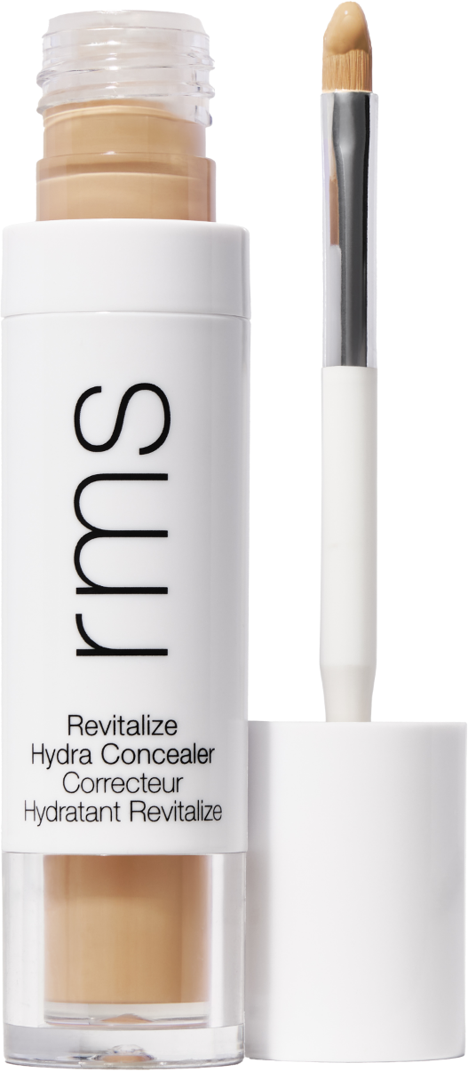 The Revitalize Hydra Concealer by RMS Beauty is a highly effective corrective liquid concealer with medium coverage and a silky, natural finish. It is smudge-proof, intensely nourishes the skin and also offers the benefits of an eye cream. It revitalises the sensitive eye area, refines the skin's texture and simultaneously conceals dark circles, blemishes and irritations with smooth, long-lasting coverage. The feather-light, creamy texture feels weightless and blends effortlessly without settling into fine lines or pores. The innovative formula is proven to moisturise for 8 hours, is hypoallergenic and suitable for sensitive skin. The concealer features a slim, integrated brush for precise application and is packed with powerful, pure ingredients including revitalising eyebright, innovative Revital-Eyes Complex, skin-firming Tightenyl™ (a natural retinol alternative), moisturising botanical squalane and signature RMS Adaptogenic Herbal Blend - for a brighter, smoother and more luminous complexion that's never dry or dull.